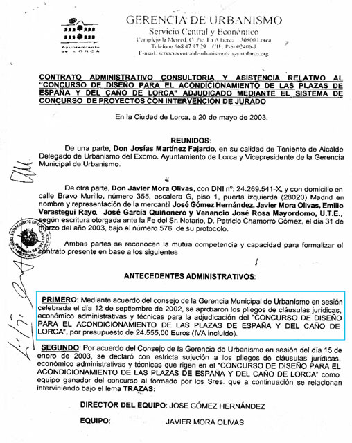 El Concejal de Urbanismo ha indicado que Collado también “falta a la verdad o no es consciente de lo que hace” cuando afirma que desde el principio se había opuesto al procedimiento negociado con publicidad para la adjudicación del proyecto de la obra de la Plaza de España, “pues todos los grupos municipales, incluido el Sr. Collado, votaron unánimemente a favor de este procedimiento en la reunión que celebró el 7 de octubre el Consejo de Gerencia de Urbanismo”.