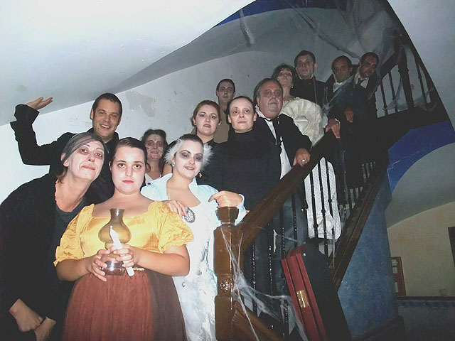 La Compañía del Teatro Guerra de Lorca y el ballet de Nuria Periago han sido los artífices que han llevado a cabo éste espectáculo de terror, que a su vez estaba complementado con un paseo en carruaje tirado por caballos por el casco antiguo de la ciudad.