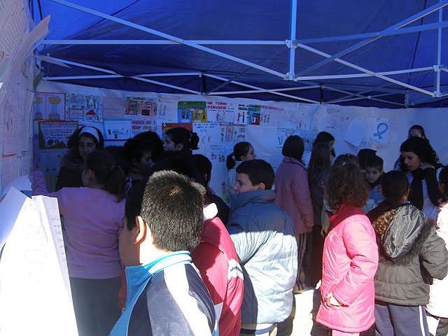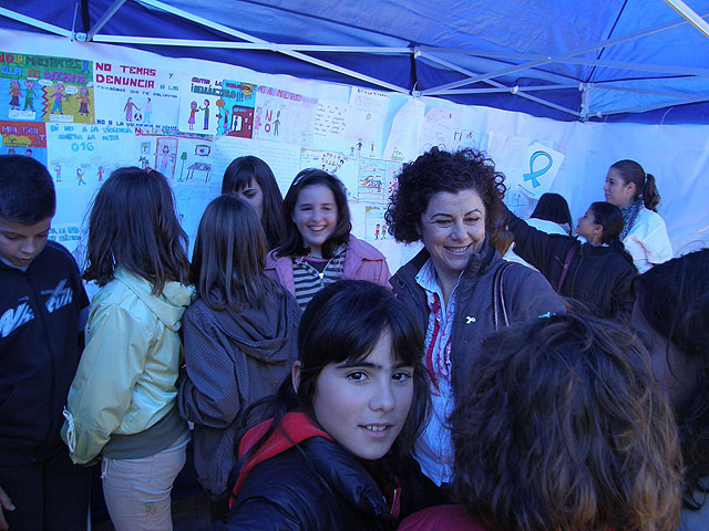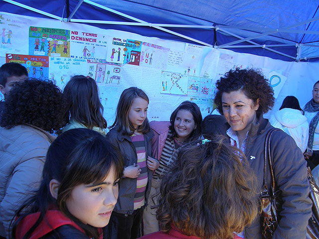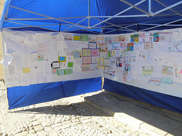 Los alumnos, que han acudido en varios grupos, han expuesto sus dibujos sobre esta temática en unas carpas habilitadas para la ocasión. Los escolares también han leído su redacción sobre el escenario. Al acto ha asistido la Concejal de la Mujer del Consistorio lorquino, Antonia López.