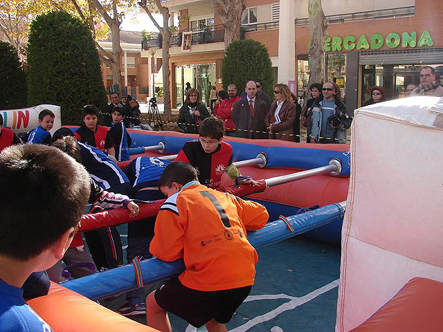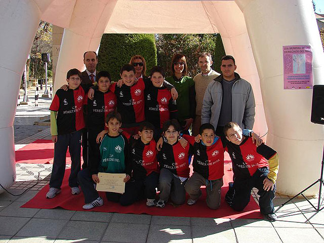 La Concejal de Atención Social del Ayuntamiento de Lorca, Lali Ibarra, ha entregado esta mañana los premios al equipo ganador del Primer Campeonato de Futbolín Humano Intercultural, organizado con motivo del Día Mundial de los Derechos del Niño, en el que han participado 3.500 alumnos de Segundo Ciclo de Primaria (5º y 6º), que ha sido el representante del colegio Público Pérez de Hita.
