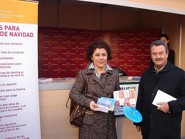 López ha explicado que tanto por la mañana como por la tarde los lorquinos y lorquinas podrán recoger en este punto informativo el CD Teo y Bea (de prevención de accidentes en el hogar) para los más pequeños, el CD Jóvenes Consumidores (material didáctico, imanes de nevera con consejos sobre distintos tipos de lavado, pegatinas con distintos consejos, folletos sobre créditos rápidos y alfombrillas para ratón de ordenador. Además, se ha instalado un expositor con consejos para las compras de Navidad.