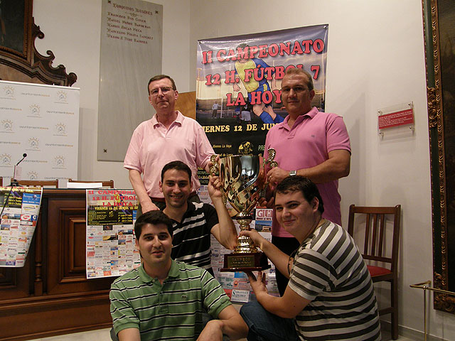El Concejal de Deportes, Francisco Montiel y el Presidente del Consejo de la Juventud de Lorca, Agustín Llamas han presentado esta mañana en una rueda de prensa celebrada en la Sala de Cabildos del Consistorio municipal, el II Campeonato de 12 horas de Fútbol 7, que se disputará en la pedanía de La Hoya, el próximo viernes día 12 de Junio.