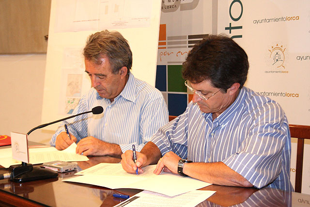 El consejero de Agricultura y Agua, Antonio Cerdá, y el alcalde de Lorca, Francisco Jódar, firmaron hoy un convenio para la construcción de un centro de limpieza y desinfección de vehículos de transporte de ganado que estará ubicado en el Paraje Casa La Higuerita de la Diputación de Barranco Hondo, y ocupará una superficie de 8.500 metros cuadrados.