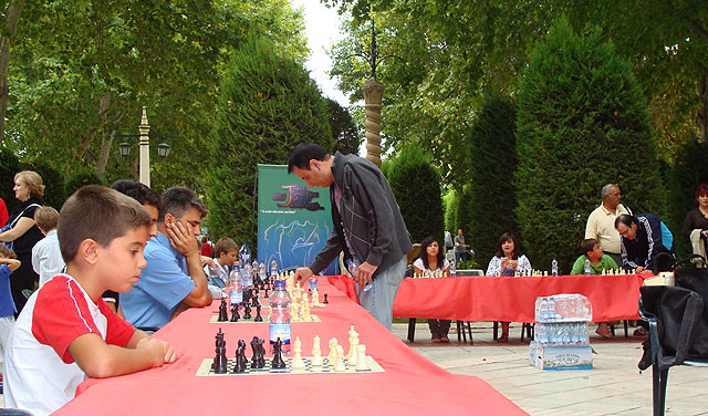 La primera en llevarse a cabo fue la Partida Simultánea de Ajedrez, disputada en la tarde del sábado en la Alameda de las Columnas. Durante casi dos horas el Gran Maestro Internacional Alfredo Giaccio, monitor del Club lorquino, disputó una y otra partida contra veinte rivales a la vez, pues los veinte tableros situados para la ejecución de la prueba estuvieron siempre a rebosar de aficionados que esperaron pacientemente su turno para medirse al ajedrecista argentino y aprender de un auténtico Gran Maestro Internacional. Pero no solo hubo competición durante la prueba, puesto que Giaccio quiso también que sus rivales, sobre todo los más pequeños, aprovecharan la cita para mejorar sus conocimientos sobre ajedrez, de ahí que mientras se producían los enfrentamientos el Gran Maestro fue aconsejando y enseñando a los otros jugadores, compartiendo su saber con los demás que tomaron buena nota de los consejos del ajedrecista profesional.
