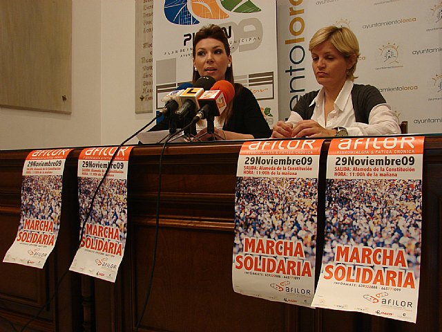 La Concejal de ONGs del Ayuntamiento de Lorca, Mari Carmen Ruiz, y la Presidenta de la Asociación de Fibromialgia de Lorca, Antonia Robles Ruiz, han presentado esta mañana la primera marcha solidaria a favor de los enfermos de esta enfermedad, que se celebrará el 29 de noviembre a partir de las 11 horas desde la Alameda de la Constitución.
