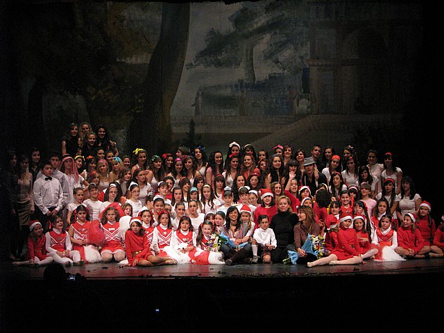 El pasado día 21 de diciembre, dentro de la programación navideña del Ayuntamiento de Lorca, se puso en escena el musical original “Un regalo de Navidad”, interpretado por más de 90 alumnos de la Academia de Danza de Maria Teresa Lazareno y por niños del Taller de Teatro del Colegio Virgen de las Huertas, dirigidos por Mayte Ríos