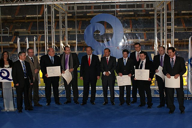 El Alcalde de Lorca, Francisco Jódar, recogió anoche en el Palco de Honor del Santiago Bernabéu, el galardón que distingue con la "Q" de calidad a la Oficina de Turismo de nuestra ciudad. La distinción fue entregada por parte del Secretario de Estado de Turismo, Joan Mesquida, en el marco de la VII Edición de la Noche Q. Este evento ha contado con la presencia de los Consejeros de Turismo de Aragón, Asturias, Castilla la Mancha, Galicia y La Rioja; el Viceconsejero de Turismo de Aragón, y con los Directores Generales de Turismo de Andalucía, Aragón, Asturias, Canarias, Cantabria, Castilla la Mancha, Castilla y León, Extremadura, Galicia y La Rioja. La gala, uno de los actos con más presencia en el marco de FITUR, tiene como objetivo reconocer la apuesta por el Sistema de Calidad Turística Española así como la celebración del 10º aniversario del ICTE. En este acto de reconocimiento a la calidad de las empresas turísticas españolas han acudido más de 1.200 personas, entre las que destacan autoridades nacionales, internacionales, autonómicas y locales; empresarios, asociaciones turísticas y medios de comunicación. Junto al Primer Edil ha estado presente el concejal de Turismo del Consistorio Municipal, Francisco Montiel, quien ha recordado que la Oficina de Turismo de Lorca ha merecido también el reconocimiento como Mejor Oficina de Turismo de la Región. Montiel ha manifestado, además, que con esta, la ciudad cuenta ya con 4 establecimientos distinguidos: una agencia de viajes, una casa rural, un restaurante y una oficina de turismo. En total, en la Región de Murcia hay 6 oficinas de información turística certificadas con la Q de Calidad, lo que sitúa a la Comunidad en el sexto lugar a nivel nacional en cuanto a oficinas de turismo certificadas.