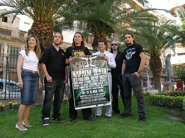 El Alcalde de Lorca, Francisco Jódar, junto a la Concejal de Cultura y Festejos del Ayuntamiento de Lorca, Rosa Mª Medina, y los organizadores del festival “Metal Lorca”, han presentado de manera oficial esta mañana el cartel del certamen que se va a desarrollar en el recinto ferial del Huerto de la Rueda entre los días 30 y 31 de julio. El Primer Edil ha destacado que “se trata de un nuevo festival heavy que ha nacido de un grupo de jóvenes lorquinos. De hecho fueron ellos quienes nos presentaron hace varios meses su proyecto. Estamos hablando de una propuesta cultural que va a enriquecer la oferta estival de ocio lorquina. Consideramos que es un proyecto que arranca con mucha ilusión por parte de sus organizadores, y de los que queremos destacar la sensatez con la que han ido dando forma al certamen que hoy presentamos. Desde el Ayuntamiento de Lorca vamos a respaldar esta alternativa heavy, y quiero aprovechar la presentación del cartel de grupos que se ha conformado para el certamen para expresar mi más sincera felicitación a los organizadores y desearles el mayor de los éxitos en el desarrollo del mismo”.