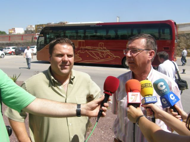 El Concejal de Turismo del Ayuntamiento de Lorca, Francisco Montiel, ha presentado esta mañana junto a los hermanos Sáez, propietarios de esta empresa de transporte, un nuevo autobús que va a promocionar la ciudad durante sus recorridos de carácter discrecional por toda España y parte de Europa, labor para la cual se ha procedido al serigrafiado de imágenes representativas de la ciudad, como es el caso de la correspondiente a la talla de la Virgen de las Huertas, Patrona de Lorca, y la que refleja el recinto amurallado del castillo de Lorca.
