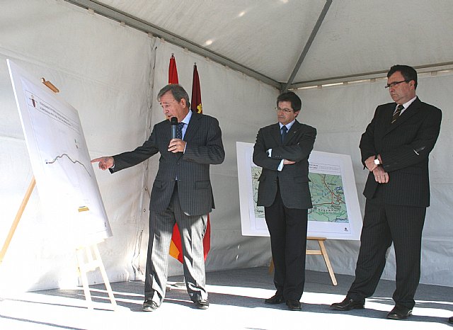 El consejero de Obras Públicas y Ordenación del Territorio, José Ballesta, acompañado de los alcaldes de Lorca, Francisco Jódar, y de Mazarrón, Francisco Blaya, inauguró hoy el segundo tramo acondicionado en la RM-D4, que comunica ambos municipios, tras la finalización de las obras por las que se han eliminado otros dos puntos negros.