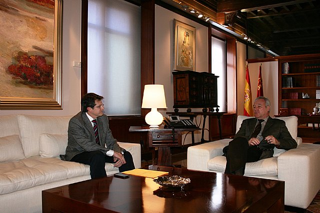 El presidente de la Comunidad, Ramón Luis Valcárcel, recibió hoy en el Palacio de San Esteban, en Murcia, al alcalde de Lorca, Francisco Jódar.