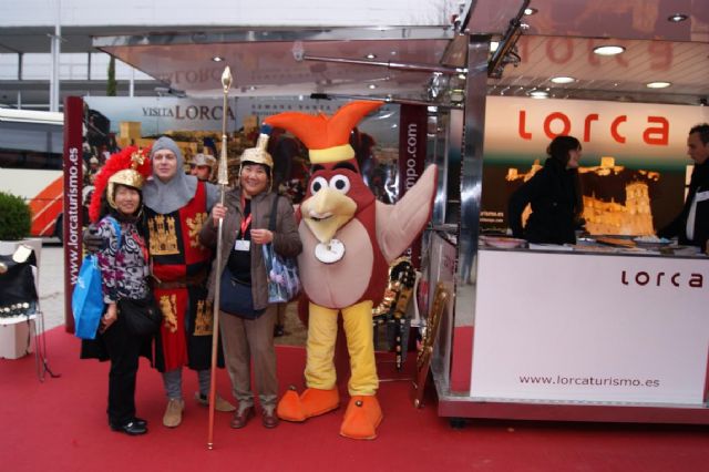 Por otro lado, el photo call instalado en el stand de Lorca en FITUR en el que los visitantes se pueden fotografiar vestidos de romanos junto con el caballero medieval del castillo y la mascota de 'Lorca Taller del Tiempo', Bensakar, está siendo todo un éxito.