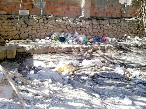 En la zona también pueden encontrarse una arqueta de distribución rota, jardines y los setos abandonados y llenos de basura, plagas en las paleras, que están sin fumigar, así como vallas rotas en la zona limítrofe del colegio, en cuya zona anexa también hay un socavón peligroso. Además, hay importantes arrastres de arena, carteles indicativos y surtidores de agua rotos y proliferación de excrementos de perros, lo que evidencia la falta de limpieza de la zona.