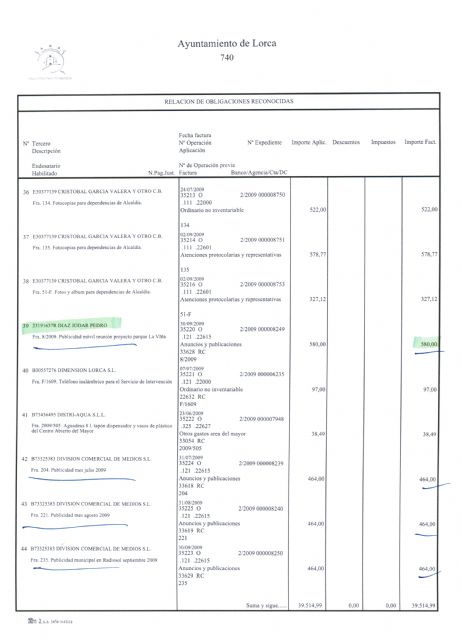 Desde el PSOE recuerdan que según consta en la relación de obligaciones reconocidas del Ayuntamiento, éste ya destinó 580 euros en un solo día, para la publicidad móvil del proyecto del parque (Adjuntamos documento oficial).