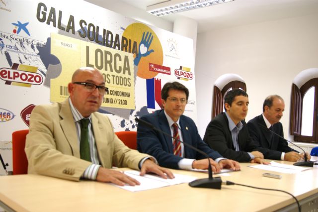 La noche solidaria LORCA SOMOS TODOS cederá todos los beneficios derivados de la recaudación de entradas y colaboraciones por vía telefónica a la Mesa Solidaria por Lorca, organismo encargado de gestionar las ayudas a la cuenta corriente arriba indicada, y compuesto por el Ayuntamiento de Lorca, el Gobierno Regional, la Asociación 11 de mayo, Cáritas, Cruz Roja, y los consulados de la República de Ecuador y el Reino de Marruecos.