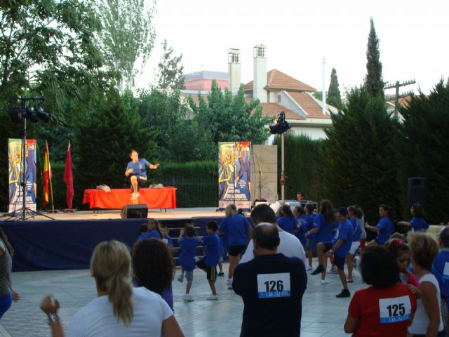 A las 19.30 horas la Alameda de la Constitución comenzó a recibir a los primeros participantes, que tras inscribirse y conseguir su camiseta conmemorativa de los Juegos participaron en el calentamiento, una novedad con muy buena acogida, pues fueron decenas las personas que aprovecharon para estirar los músculos y aprender algunos secretos para practicar deporte sin riesgos de la mano del monitor de fitness Pedro Rosales.