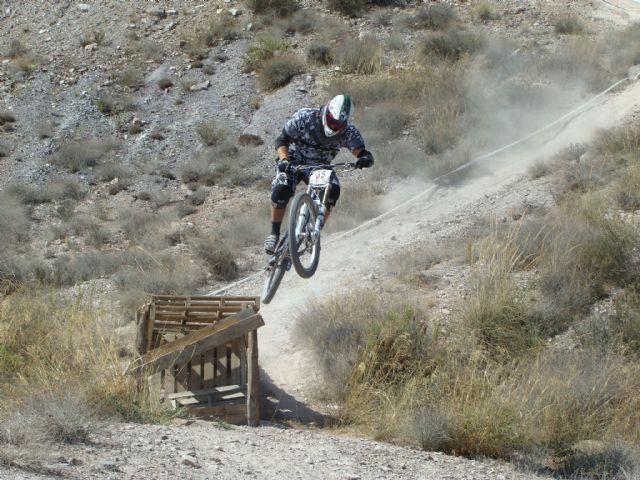 La adrenalina, la peligrosidad y el espectáculo son factores que concurren a partes iguales cada año en el Open Regional de Descenso de los Juegos Deportivos del Guadalentín. Este domingo, con salida desde el mirador de la Peñarrubia y en un marco natural sin comparación, 49 ciclistas de 14 equipos se enfrentaron para obtener el mejor tiempo y llevarse a casa la medalla de los Juegos que premia en esta categoría a los más osados y con menos temor a las caídas.