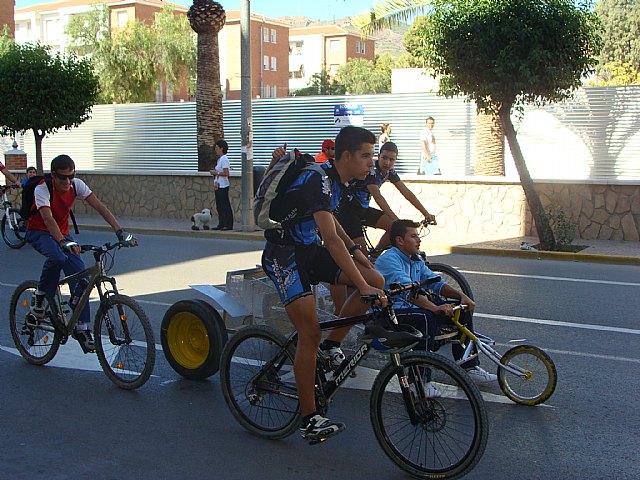 Desde las 10.30 de la mañana, el Huerto de la Rueda, que por tercer año consecutivo acogía la salida y la llegada de la prueba, recibía más y más ciclistas de todas las edades y condiciones que anunciaban que el ciclo-Paseo sería un éxito sin precedentes. Allí se realizaron las últimas comprobaciones en ruedas, cascos y dorsales y, a las 11, se procedió a la salida. Las primeras pedaladas llevaron al amplio pelotón por la Calle Poeta Para Vico, Alameda de Cervantes y Ronda Sur, cruzando después por la Carretera de Granada el Barrio de la Viña y San José, hasta adentrarse en la Avenida Juan Carlos I. Tras finalizar la calle central de la ciudad, los ciclistas subieron el centenario Puente del Barrio, atravesaron la Calle Mayor, Avenida de las Fuerzas Armadas y Avenida Europa y enfilaron la Calle Juan Antonio Dimas, hasta volver de nuevo al Huerto de la Rueda sobre las 12.30 horas. Más de 10 kilómetros por todos los barrios del casco urbano de Lorca que se hicieron muy amenos gracias a la música y el buen ambiente mostrado por todos los participantes, entre los que destacaban, como no podía ser de otra forma en esta fiesta, los disfraces. Una luchadora de sumo en bikini, un ciclista recién levantado en pijama, pelucas, un grupo de jóvenes de La Paca al más puro estilo de la película "La Naranja Mecánica", equipos enteros de hippies y algún que otro pirata sobre dos ruedas.