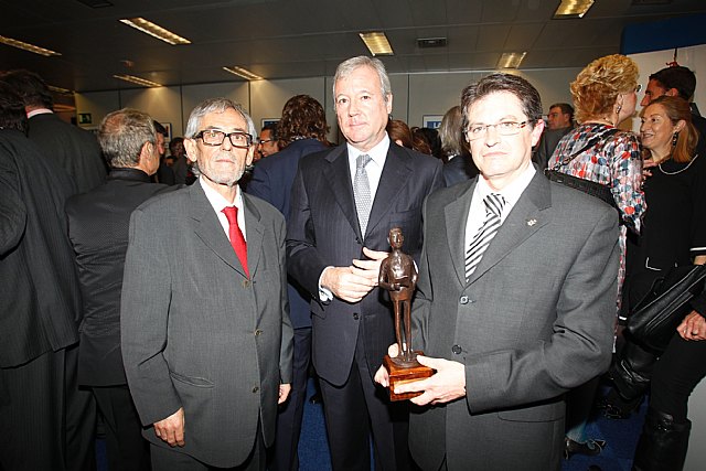 El presidente de la Comunidad, Ramón Luis Valcárcel, recogió hoy en Madrid, junto con el alcalde de Lorca, Francisco Jódar, de manos de Su Alteza Real la Infanta Elena el galardón al 'Héroe del Año', que fue otorgado "al pueblo de Lorca" en la IV edición de los Premios Alfonso Ussía que otorga el diario La Razón.