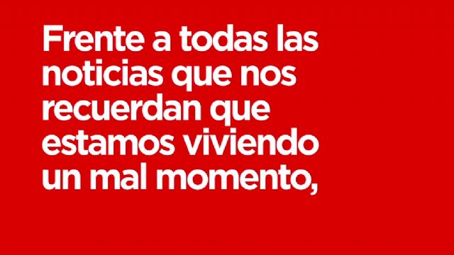 El anuncio, en el que un coro de niños versiona la canción "Whatever" de Oasis, muestra noticias cargadas de optimismo que han sido publicadas en diferentes medios de comunicación y en redes sociales. Entre ellas se encuentra la historia de los voluntarios de "Chapuzas sin fronteras" que, además de ayudar a los afectados por los terremotos de Lorca, realizan pequeñas reparaciones en domicilios de personas mayores que sirven además de excusa para prestarles compañía durante un tiempo.