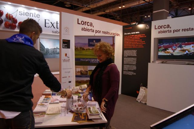 "La inmensa mayoría de los visitantes de los dos stand de Lorca se interesaban por el estado de la ciudad tras los seísmos y mostraban su solidaridad con los afectados, e incluso algunos adquirían la chapa de 'Somos Lorca' creada por 'Lorca Taller del Tiempo' a favor de la Mesa Solidaria y que también sirve de elemento de difusión de la imagen de la ciudad", explicó el edil. "Además, ha sido también la feria más rentable en términos económicos, pues gracias a los patrocinadores hemos tenido unos costes mínimos y hemos logrado en sólo cinco días unas 200 apariciones en medios de comunicación de todo el mundo hablando de nuestra oferta turística, lo que tiene un valor incalculable", agregó el concejal. Todo ello, sin contar los compromisos adquiridos en la feria por parte de los Príncipes de Asturias y la Iglesia Católica para contribuir a recuperar nuestro patrimonio histórico.