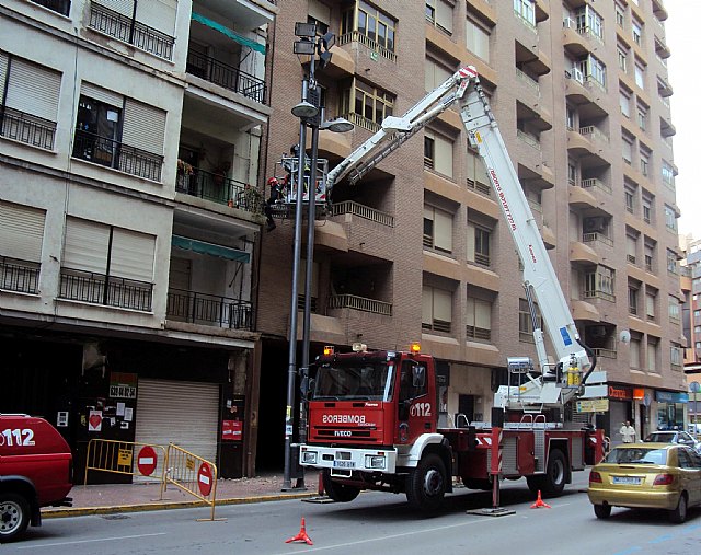 Bomberos del Consorcio de Extinción de Incendios y Salvamento de la Región de Murcia (CEIS) con base en Lorca, están realizando inspecciones técnicas en inmuebles de la localidad, incluidos en el recorrido de los desfiles bíblico pasionales de Lorca, para comprobar su estado de conservación y detectar elementos que presenten algún riesgo de caída.