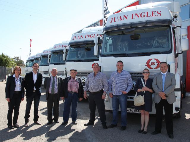 El Concejal de Transportes del Ayuntamiento de Lorca, Eduardo Sánchez, ha asistido al acto de entrega de 15 camiones Renault adquiridos por parte de la empresa lorquina Transportes Apiche, con destino a su utilización en trayectos tanto nacionales como internacionales. Se trata de una compra que demuestra el interés de los emprendedores lorquinos por salir adelante frente a la delicada coyuntura económica.