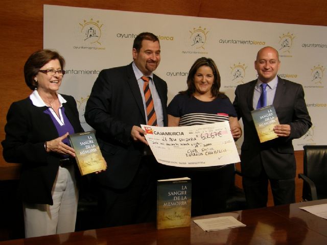 El acto de entrega de la recaudación ha contado con la presencia del autor de la novela, Antonio Porlán, así como Pablo Fermín Hernández (Presidente del Club Social de Empleados de Cajamurcia) y Pilar García de Cossío, (directora Regional de Cajamurcia).
