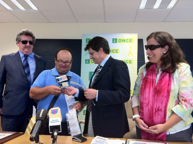Juan Carlos Morejón de Girón, Delegado Territorial de la ONCE en la Región de Murcia, Teresa Lajarín Ortega, Presidenta del Consejo Territorial de la ONCE en la Región de Murcia; y Francisco Jódar Alonso, Alcalde de Lorca han presentado este cupón, en un acto en el que han estado acompañados por Ana Maria García, Directora de la Agencia de la ONCE en Lorca.