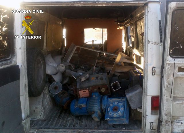 La Guardia Civil de la Región de Murcia, en el marco de los servicios establecidos del "Plan contra las sustracciones en explotaciones agrícolas y ganaderas", ha detenido a cuatro personas, sorprendidas tras la sustracción de maquinaria y herramienta de un almacén agrícola en Lorca.