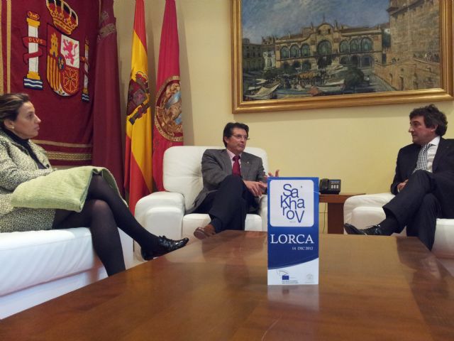 El Alcalde de Lorca, Francisco Jódar, junto al Director de la Oficina del Parlamento Europeo en España, Ignacio Samper, han presentado esta misma mañana la jornada de difusión del Premio Sájarov a la Libertad de Conciencia 2012 que se celebrará en Lorca el próximo 14 de diciembre. Esta jornada ha sido organizada por la Oficina del Parlamento Europeo en España, Comunidad Autónoma y Ayuntamiento de Lorca.