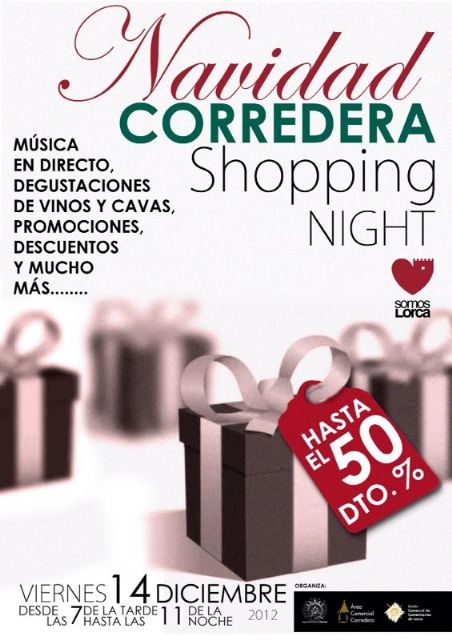 El Concejal de Comercio del Ayuntamiento de Lorca, Eduardo Sánchez, ha informado que 40 comerciantes del casco histórico de Lorca celebrarán entre las 19:00 horas y las 12 de la noche de este viernes 14 de diciembre la segunda edición de la "Corredera Shopping Night", como bienvenida a la Navidad.