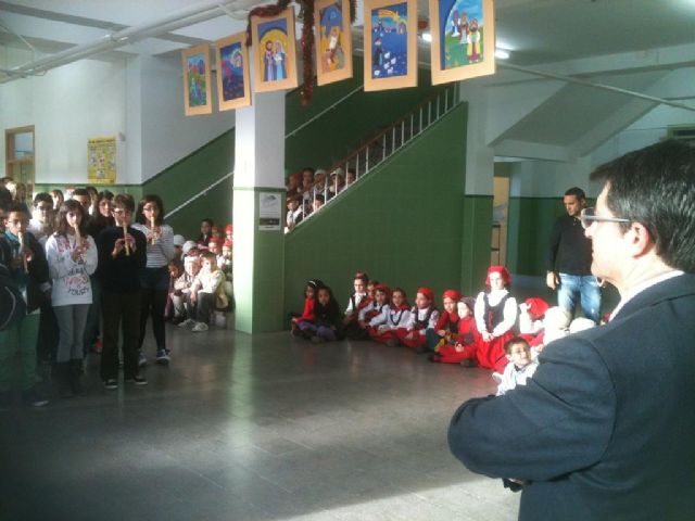 Los alumnos del Colegio Alfonso X han felicitado esta mañana las Navidades al alcalde de Lorca, Francisco Jódar, que como viene siendo habitual ha visitado uno de los colegios del municipio que le ha invitado a acudir en el último día lectivo antes de las vacaciones de fin de año.