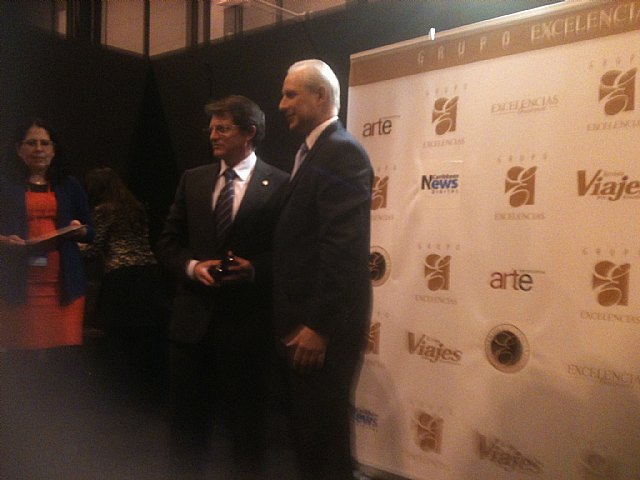 30 de enero de 2012. El Alcalde de Lorca, Francisco Jódar, ha recibido esta tarde en la Feria Internacional de Turismo de Madrid (FITUR) y de manos del presidente de la multinacional de comunicación turística Grupo Excelencias, José Carlos de Santiago, el premio Excelencias 2012 por las iniciativas impulsadas por el municipio para potenciar el turismo tras los seísmos de 2011, como es la ruta “Lorca, Abierta por restauración”, una iniciativa puesta en marcha paradar a conocer el patrimonio que se está recuperando en la Ciudad del Sol.