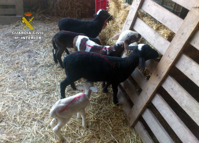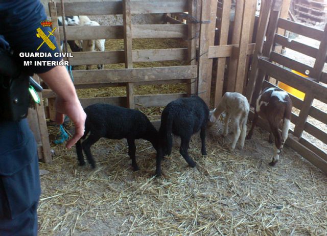La Guardia Civil de la Región de Murcia y la Policía Local de Lorca, en el marco del 'Plan contra las sustracciones en explotaciones agrícolas y ganaderas', han desarrollado de forma conjunta una investigación para esclarecer la sustracción de gran cantidad de corderos en una granja de la pedanía lorquina de Ramonete, que se ha saldado con la detención del presunto autor del robo y la recuperación, en otra granja de Puerto Lumbreras, de 25 de los corderos sustraídos.