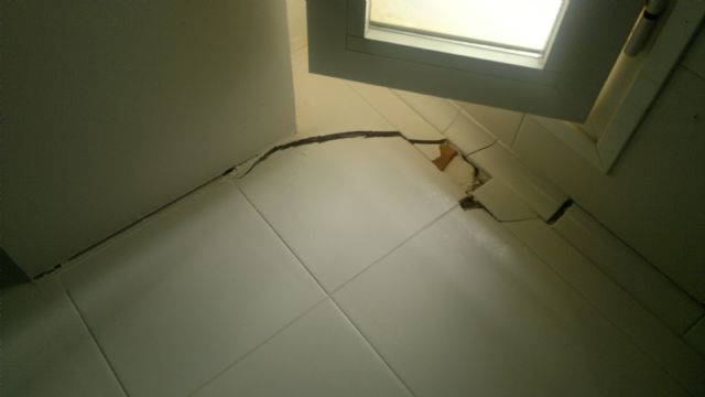 "Similar situación presenta un campo de fútbol de La Hoya-Los Tollos", afirma el edil socialista. "Se trata de un campo de fútbol de césped artificial para competiciones de categoría infantil, que en las pasadas inundaciones de 2012 se hundió parte de él y continua sin repararse, impidiendo que se puedan celebrar partidos oficiales de esta categoría por esa circunstancia. Pero es que los vestuarios que usan los deportistas presentan también grietas y deterioros impropios de unas instalaciones que fueron inauguradas a "bombo y platillo" el 20 de junio de 2009. Lo que viene a demostrar que la conservación y arreglo de desperfectos brilla por su ausencia".