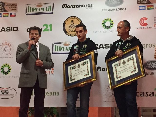 El Alcalde de Lorca destacó que "se trata de un motivo de orgullo el que dos vecinos no solo hayan logrado completar tan exigente prueba, sino que además lo hayan hecho realizando excelentes posiciones y cosechando dos récords históricos. Y es que además de finalizar en los puestos 55 Domingo y 56 Carlos, son la primera pareja padre-hijo que consiguen finalizan el Dakar. Al mismo tiempo, Carlos se ha convertido en el piloto más joven en terminar la prueba, con 20 años y un mes de edad".