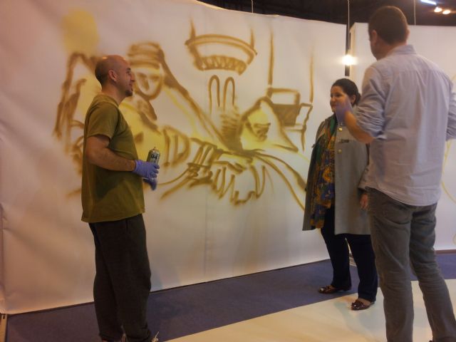 Lorca refuerza su campaña de promoción de la candidatura de los bordados de Semana Santa en Fitur con una muestra de grafitis con la imagen de mantos de Blancos y Azules