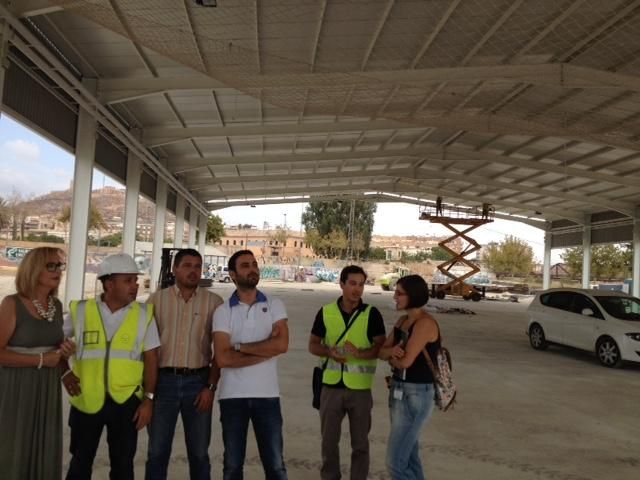 os Concejales de Empleo y Obras y Cultura del Ayuntamiento de Lorca, Eulalia Ibarra, y Agustín Llamas, han visitado esta mañana las obras de instalación en el Huerto de la Rueda de una cubierta permanente y multiusos de 3.000 m2. Ibarra ha explicado que "se está ultimando esta instalación que incluye un amplio circuito interno de iluminación dotado de un sistema de 64 focos de 400 vatios y será aprovechada para hacer frente a eventuales inclemencias meteorológicas, posibilitando un desarrollo óptimo de los diferentes eventos que se van a llevar a cabo en este recinto. Cabe destacar que este nuevo recurso prestará cobertura para la realización de la Feria y Fiestas de septiembre, así como las ferias de Ganado Porcino (SEPOR), Fericab, Feria de la Mascota y la del caballo cruzado, entre otras citas.