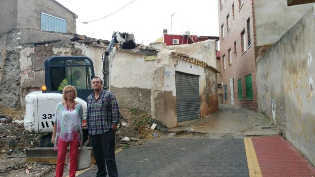 a Concejal de Obras y Desarrollo Local del Ayuntamiento de Lorca, Eulalia Ibarra, y el edil de Emergencias, Juan Miguel Bayonas, han visitado esta mañana las obras de remodelación de la Calle Capachas y adyacentes, en el entorno de la Ramblilla de Tejares, donde esta semana se realizará la demolición de un muro y dos cocheras que estrechaban la travesía de esa calle de forma que sólo dejaban un paso de 1,5 metros de anchura, algo totalmente inaccesible para vehículos.