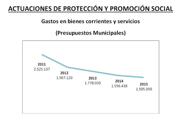 Al hilo de estos datos, Sánchez Jódar ha denunciado el recorte del 30% en recursos sociales desde 2011 hasta 2014, así como el recorte, por ejemplo, de casi un 41% en gastos de bienes corrientes y servicios en los presupuestos que el Ayuntamiento de Lorca destina a actuaciones de protección y promoción social.