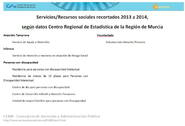 El centro regional de estadística dependiente de la CARM, gobernada por el PP, revela el recorte en las políticas de Servicios Sociales destinadas a Lorca, confirmando la falta de cobertura hacia las familias lorquinas con más necesidades