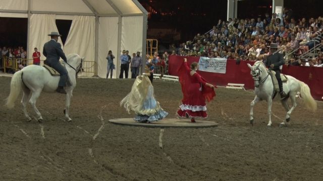 También merecieron sus aplausos la exhibición de los Enganches de tradición, con un tiro de nueve caballos, además de las evoluciones del Centro Hípico el Valle, el Marathón, la Yeguada Peña de Béjar, la Yeguada Román Merino proveniente de Calasparra-, o la Doma Vaquera de José Manuel Morante.