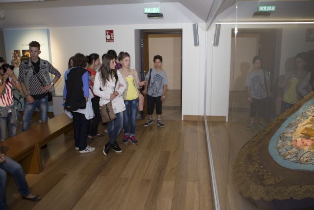 Concretamente visitaron el MASS 7 alumnos franceses, 7 rumanos, 6 italianos, 20 españoles, así como 10 profesores procedentes de estos mismos países. La visita fue guiada en español, francés e italiano por el mayordomo Pepe Pérez-Muelas, quien dio a conocer la historia del Paso Azul, la configuración de los desfiles bíblico-pasionales de Lorca y la tradición del bordado lorquino dentro de la procesión del Paso Azul.