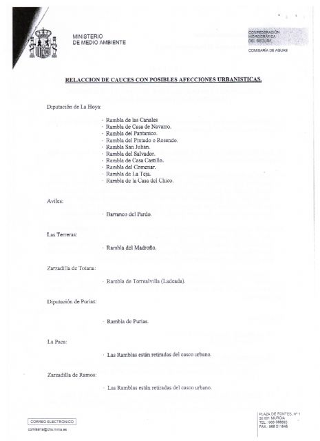 De otro lado, y a propósito de otra obra polémica, el concejal de IU-V ha vuelto a insistir en el error de los trabajos de cubrimiento que se realizan en la rambla de Tiata para la ejecución de un vial. José García Murcia ha hecho alusión a que informe aportado para la revisión del PGOU de Lorca en 2002 se advertía expresamente que "el cubrimiento de la Rambla de Tiata no es viable" y que la importancia de la función de derivación de caudales del Guadalentín que realiza "exige mantener la accesibilidad que proporciona la canalización abierta, fundamental para la adecuada conservación y mantenimiento de ese cauce". Por ello ha vuelto a exigir del Alcalde de Lorca que reconsidere la oportunidad de ese proyecto y se produzca la paralización de un despropósito que costará muchos millones de euros, que no sirve para nada, y que puede hacer mucho más peligrosas las avenidas e inundaciones que se producen en Lorca.