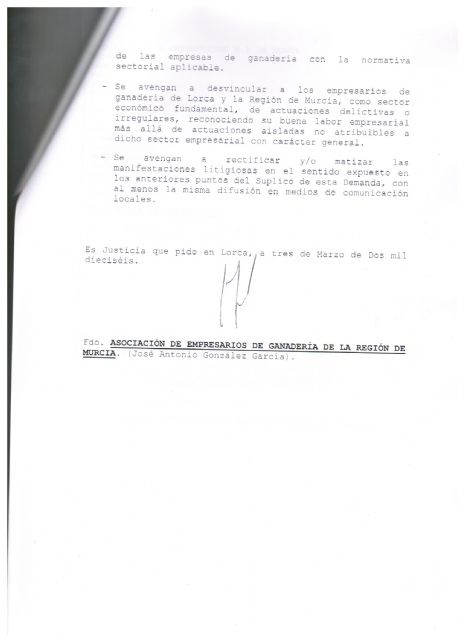 Esta segunda acción ante los tribunales de justicia contra el concejal de IU, la interponen los empresarios del ganado, que ahora pretenden que los concejales de IU se desdigan de sus declaraciones en torno a la molestia y nocividad de los charcos de purines que están empezando a aparecer junto a grupos de viviendas en algunas pedanías del campo de Lorca, tras el cierre de las dos plantas de cogeneración de energía eléctrica que servían para tratar ese residuo ganadero y que fueron cerradas hace algunos años.