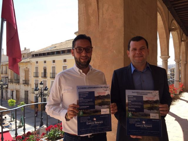 El Concejal de Deportes del Ayuntamiento de Lorca, Juan Francisco Martínez, y el gerente de Lorca Golf Resort, Ignacio Simancas, han presentado el segundo Torneo Ayuntamiento de Lorca y que se celebrará este sábado 28 de mayo por la mañana en este recinto deportivo Lorca Golf Resort, ubicado en la sierra de la Almenara.