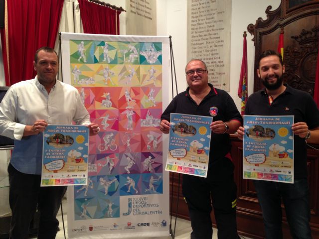 El Concejal de Deportes del Ayuntamiento de Lorca, Juan Francisco Martínez y el Concejal de Emergencias, Juan Miguel Bayonas, han anunciado la incorporación al programa de actividades de los XXXVIII Juegos Deportivos del Guadalentín de un concurso de castillos de arena como novedad para la edición de 2016. Esta actividad se anexiona a la Jornada de Juegos Populares y Tradicionales que se viene celebrando desde la 30ª edición de las olimpiadas lorquinas. Se celebrará el viernes 7 de octubre a partir de las 17 horas.