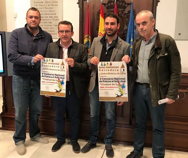 El Concejal de Cultura del Ayuntamiento de Lorca, Agustín Llamas, el presidente de la Unión Comarcal de Comerciantes de Lorca, Juan Montoya, y el Coordinador del Concurso de Pintura Centro Histórico y Corredera, Manuel Sánchez, han presentado esta mañana el V Concurso Nacional de Pintura al Aire "Ciudad de Lorca", que tendrá lugar el próximo sábado 12 de noviembre.
