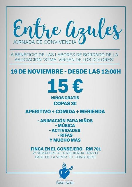La Hermandad de Labradores, Paso Azul, celebra este sábado día 19 de noviembre una jornada de convivencia en El Consejero. La cita tiene por objetivo disfrutar de un completo día de ocio y compañerismo al mismo tiempo que se obtiene un remanente económico que se destinará a las labores de bordado que se están desarrollando desde la Asociación de la Santísima Virgen de los Dolores.